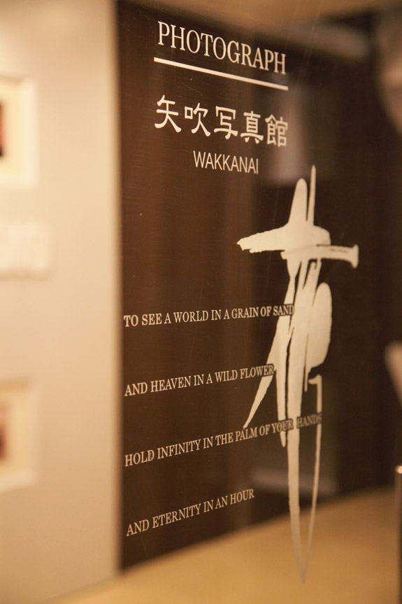 スタジオ入り口のガラスに刻まれている英語の詩は、詩人であり、版画家でもある